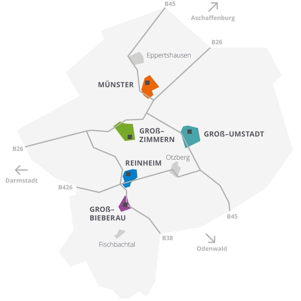 Derzeit sind wir mit vier stationären und drei teilstationären Einrichtungen sowie Betreutes Wohnen an zwei Standorten im Landkreis Darmstadt-Dieburg vertreten.